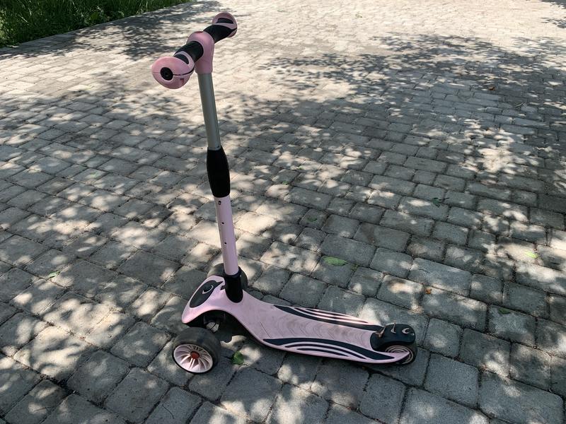 Трехколесный самокат предназначен для детей от 3-х до8-ми лет.Высота ручки регулируется от 62 до 77см. Имеют амортизацию на колесах.Заднее колесо оснащено крылом-тормозом.Самокат в хорошем состоянии.