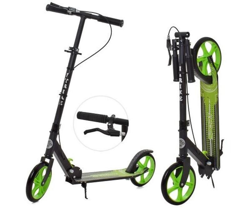 Cамокат двухколесный Itrike SR 2-051-1, с ручным тормозом, Черный оснащен каркасом из алюминия. Конструкция снабжена двумя колесами из литого полиуретана размером 200 мм. Высоту руля можно регулировать в нескольких положениях. Рекомендованный возраст: от 7 лет Колеса PU, диаметр передних 200 мм Регулируемая высота руля 90-106 см Мастериал алюминий+сталь Подножка 54(34)-11см Ширина руля 39см Подставка Ручной тормоз Складной