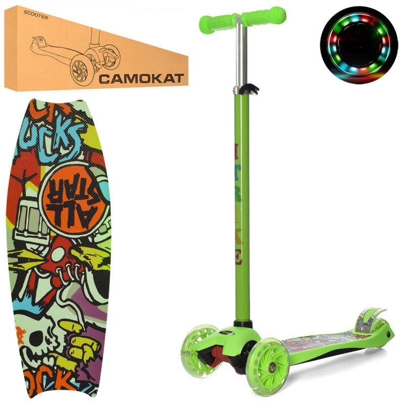 Самокат детский maxi itrike jr 3-055-1-gr с подсветкой