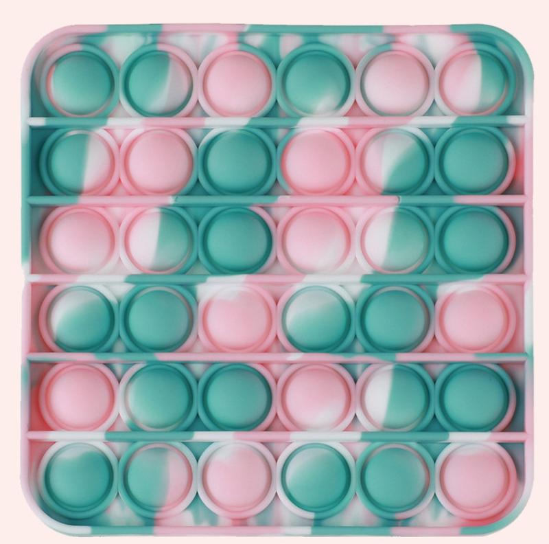 Игрушка антистресс Pop It Уникальная игрушка Антистресс Push up bubble Поп ит - это силиконовая игра для детей и взрослых. Игра бесконечная пупырка уникальна тем, что благодаря пупырчатым шарикам, которые вдавливаются внутрь, оторваться от нее невозможно. В нее могут играть как один, так и двое и более детей и взрослых. Правила придумывают сами игроки. Поп-ит - это двухсторонние антистресс-игрушки, в которых много пузырьков. Когда их сдавливаешь, они издают звук, похожий на лопанье пузырчатой пленки. Игра Поп ит помогает хорошо развивать мелкую моторику у детей. Сочетает в себе большое количество игр: игра на скорость, кто последний нажмет шарик, а также снять стресс и успокоить нервы. Возьмите с собой антистресс Pop It в путешевствия, кафе и дети будут заняты на долгое время. К тому же игрушка довольно легка в уходе, можно мыть даже в посудомоечной машине. Pop-it дословно переводится как «лопни это». Это детская игра, процесс в которой можно сравнить с лопанием воздушно-пузырчатой упаковочной плёнки. Но если во втором случаем каждая «пупырка» одноразовая, то поп-иты можно давить с характерными ощущениями и звуками «бесконечно»: десятки силиконовых пузырей просто выдавливаются в другую сторону. Характеристики: - Тип: антистресс игрушка - Материал: силикон - Вес в упаковке: 60 г - Производитель: Китай Правила: игроки по очереди нажимают на любое количество пузырей в одном ряду; каждый игрок может вдавливать по одному пузырьку за раз, или несколько, но они должны быть рядом; одновременно можно вдавливать пузырьки только из одной линии пузырьков; игрок, который вдавит на последний пузырь, проигрывает. Выполнено из качественного и безопасного силикона.