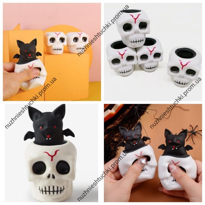 Череп игрушка антистресс жемкалка выскочка летучая мышь