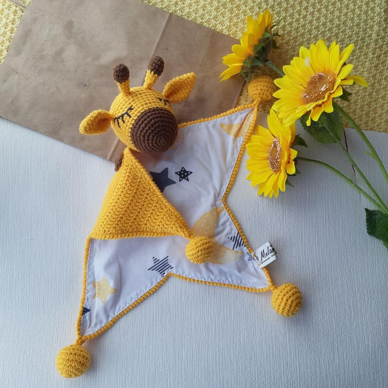 Комфортер, сплюшка - спеціальна іграшка, для самих маленьких. Унікальність іграшки в тому, що створює ілюзію комфорту, який дитині дарує близкість мами. Мамі необхідно брати іграшку під час годування, і тканина буде просочуватися особливим запахом - маминим запахом. Коли малюка перекладають в ліжечко, потрібно покласти поруч комфортер і дитина, завдяки тонкому нюху буде відчувати мамину присутність. Кофортери мають спеціальні "пальчики", вузлики, які досить часто стають заміною гризунку. Особлива конструкція робить іграшку ідеальною для перших ігор - пом'яти, посмикати, помотиляти, помусолити. Її легко утримувати і приємно притискатися увісні. Комфортер складається із троьх шарів: перший шар в'язаний, другий шар - натуральний ситець. Створює так звану подушку, яка допомагає тримати форму, надає м'якості готовому виробу; Третій шар 100% бавовна, тканина з яскравими принтами. Усі деталі вив'язані і надійно пришиті. Відсутні дрібні та гострі деталі. Догляд: ручне прання 30 град., в пральній машині в ручному режимі. Сушити в розправленому вигляді. Прасувати зі сторони бавовни. Термін виготовлення 7 робочих дня. За потреби виготовимо в іншому кольорі. ХАРАКТЕРИСТИКИ Розмір 35 Х 30 см. Матеріал: - напівбавовняна пряжа - безпечна для вашої дитини, не викликає алергічних реакцій, не линяє після прання і не має ворсу; - холлофайбер - наповнювач, який відрізняється більш щільною структурою ніж синтепон, не викликає алергічних реакцій, - натуральний ситець, - принтована тканина - 100% бавна