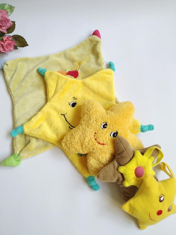 🔸Фото 3 - салфетка-комфортер (25×22 см). Очень приятная на ощупь. ‼️Бирочка срезана. В хорошем состоянии. 🔸Фото 4 - салфетка-комфортер (24×29 см). Очень приятная на ощупь. В хорошем состоянии. 🔸Фото 5 - игрушка Звёздочка. Внутри имеются гранулы. В хорошем состоянии. 🔸Фото 6 - игрушка-подвеска Звёздочка. Внутри имеются гранулы. В хорошем состоянии. 🔸Фото 7 - игрушка-подвеска Звёздочка. Внутри погремушка. В хорошем состоянии. ‼️Цена указана за лот. 🔥В наличии много других интересных игрушек, смотрите мои лоты. ☝️Перед оформлением заказа, ознакомьтесь пожалуйста с информацией в профиле. 🛑 Условия оплаты и доставки указаны в разделе "ОБО МНЕ". Спасибо что заглянули 💖