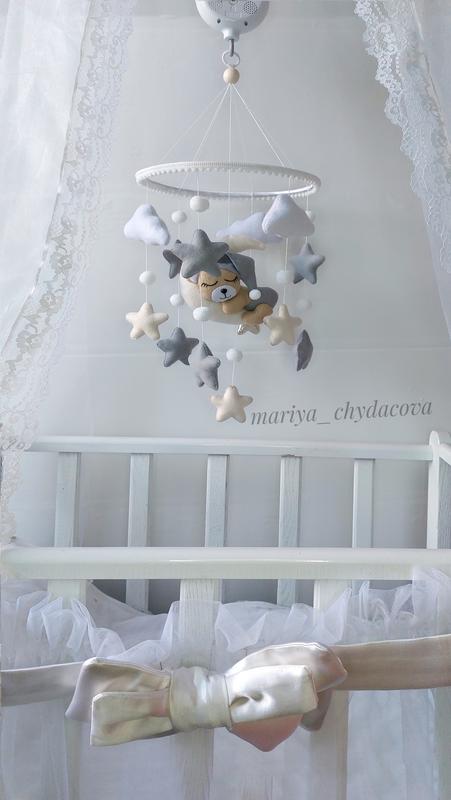 Декоративний мобільний ручної роботи з фетру. Мобіль пошитий вручну з фетру найвищої якості, а всередині кожної фігурки м'який гіпоалергенний наповнювач. Також у мобіль входять намистини з вовни австралійського мериноса, повалені вручну. Мобіль може бути виконаний у будь-якому кольоровому поєднанні. Палітра налічує понад 50 варіантів кольорів. Напишіть які кольори Вас цікавлять, прикріпіть фотографії Вашої дитячої або картинки, що просто сподобалися Вам, а я підберу для Вас варіанти квітів і разом ми створимо мобіль Вашої мрії