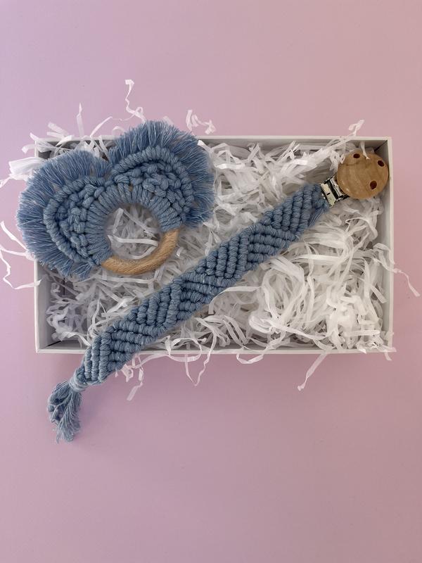 Хендмейд Набір для немовляти Тримач для соски та гризунець Виконаний з еко матеріалів: Дерева та пряжі В наявності: в кольорах як на фото Під замовлення: підберемо колір під ваше вподобання Більше фото в інста stemari_ua