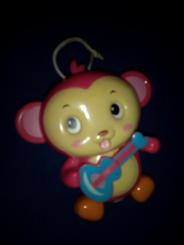 Висота 15 см. Ушки і ножки шевеляться. Можна підвісити. Якщо потягнути за шнурочок/хвостик гратиме музика. Якісна, не вонюча китайська пластмасса.