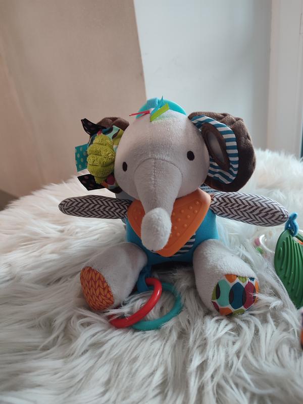 Розвиваючі іграшки-брязкальця з плюшку і пластику. Кожна іграшка містить інтерактивні елементи: пищалки, шаматючи частинки, пластикові кільця з наповненням і без, силіконові деталі. Не линяють. У мене 2 дитини выросли на одній такій ігрвшці і вона як нова. В наявності котик, песик 2шт, слоник 3шт