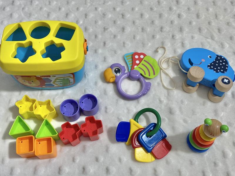 Набір фірмових іграшок для малюка: сортер Fisher Prise, гризунець Chicco, , дерев‘яний слоник і пірамідка. Іграшки в чудовому стані, після однієї дитини.За все 440грн