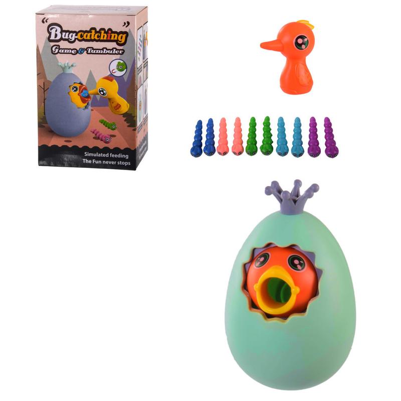Яйцо с дятлами и магнитными червячками. Взрослый дятел клювом достает червей, магнит хорошо держит и кормит ими птенца. Чем полезна эта игра? Развитие мелкой моторики рук. Тренировка системы рука-глаз. Закрепляем названия цветов червей и находим червячков одинакового цвета. Комлектация: - дятел - яйцо - гусеницы 10 шт Также игрушку можно использовать как копилку. Размер игрушки: 8.5 х 8.5 х 14 см Размер упаковки: 11 х 9 х 17 см Упаковка: коробка. Возраст: от 3 лет