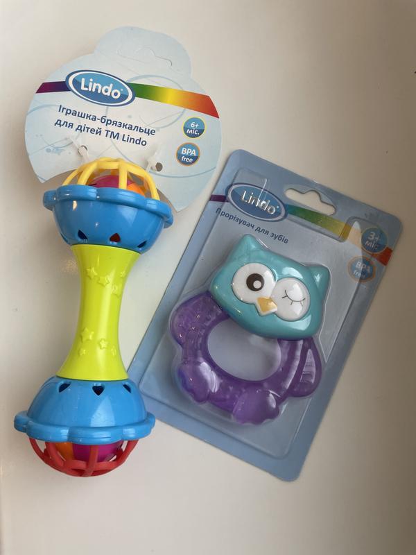Іграшка-брязкальце гантеля +6 Lindo Прорезыватель для зубов Совушка, фиолетовый +3 Состояние - новый.