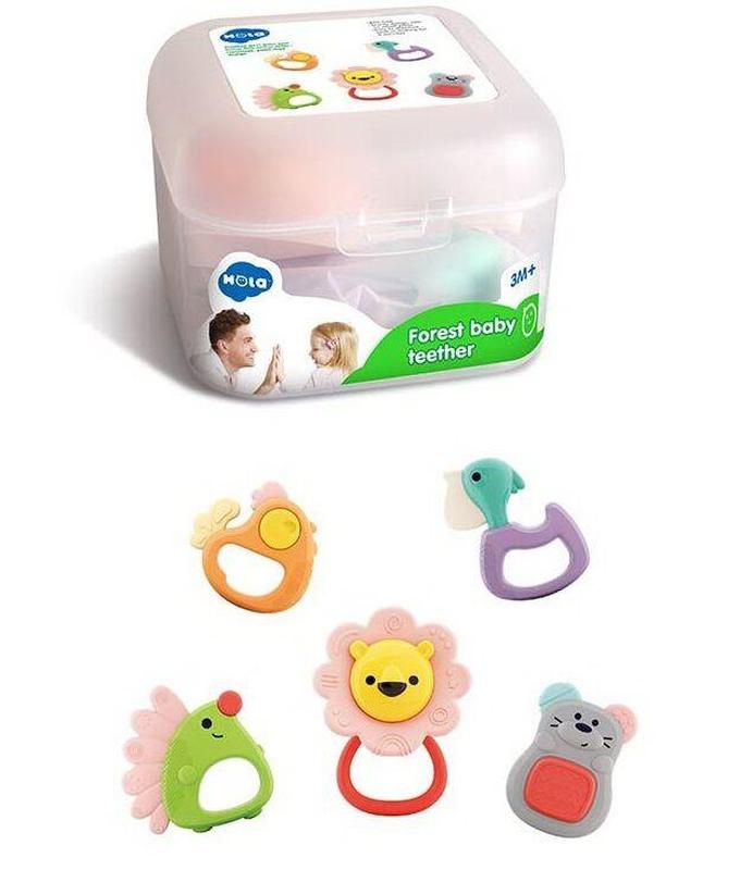Набор погремушек от производителя "Hola" - настоящее произведение искусства, сочетающее в себе красоту и функциональность. Великолепные пастельные оттенки и насыщенные цвета сливаются в одном танце, создавая неповторимую гамму, которая манит и завораживает детское воображение. Каждая погремушка обладает своей уникальной текстурой, которая приятна на ощупь и развивает тактильные ощущения малыша. Особенности: - приятная для глаз пастельная цветовая гамма; - в набор входит 5 разнообразных погремушек; - каждая игровая модель оснащена эластичным прорезывателем; - компактный бокс для хранения игрушек; - различные размеры позволяют малышу легко ухватить погремушку своей ручкой и исследовать ее, развивая моторику и координацию движений; - игрушки выполнены из высококачественного безопасного пластика. Размер упаковки:16 см × 15 см × 11 см Упаковка:Бокс