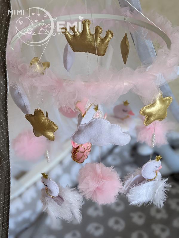 Ніжний та витончений мобіль 🫶ручної роботи🫶 ✨"Принцеса Лебідь"✨ на дитяче ліжечко. Пастельні кольори , намистини та пір'ячко роблять його неперевершеним. Ручна робота, виконаний із фетра та екошкіри . Перша іграшка для маленької принцеси 👑стане бездоганним подарунком та прикрасить дитячий інтерьер. 🩷🤍🩷Музичний блок можна придбати окремо +200грн