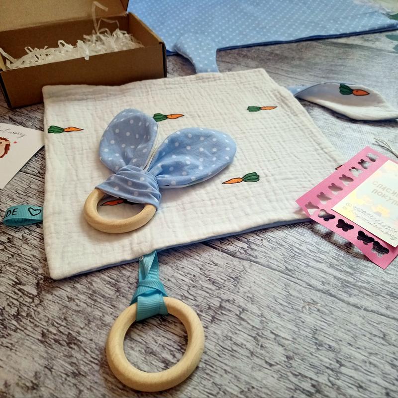 подарочные наборы для новорожденных Цена указана за один наборчик (детская двусторонняя салфетка+игрушка+гарная упаковка или детская двусторонняя салфетка+грызунок с деревянным колечком+гарная упаковка) Также создали страницу в инсталграм, которая постепенно будет заполняться новинками. Все изготовлено собственноручно и только из качественных материалов