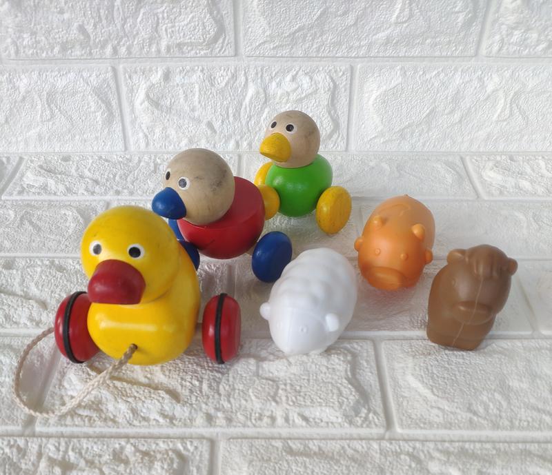 Игрушки б/в. Цена за все 135 грн. Каталка деревянная и зверюшки прочный пластик. Пишите, договаривайтесь!