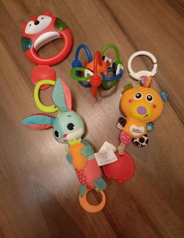 Качественные игрушки для самых маленьких от известных производителей. Все в идеальном состоянии, яркой расцветке с приятными звучанием. Игривые звонки не оставят вашу малышку без внимания, а шуршащие деталики заинтересуют маленькие пальчики. Можно повесить на кроватку или же на коляску. В чистом безупречном состоянии. Станки были куплены в Домик Игрушек. Цена за все.