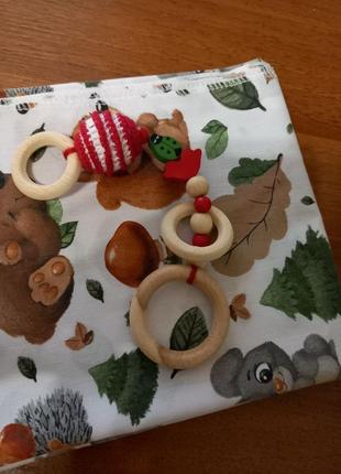 Древесные" кольца, деревянные бусины, погремушки. В лоте одно