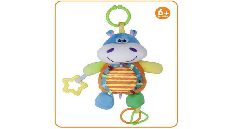 Плюшевый бегемот с кольцом для кроватки мягкая игрушка-подвеска в коляску подвеска-погрему...