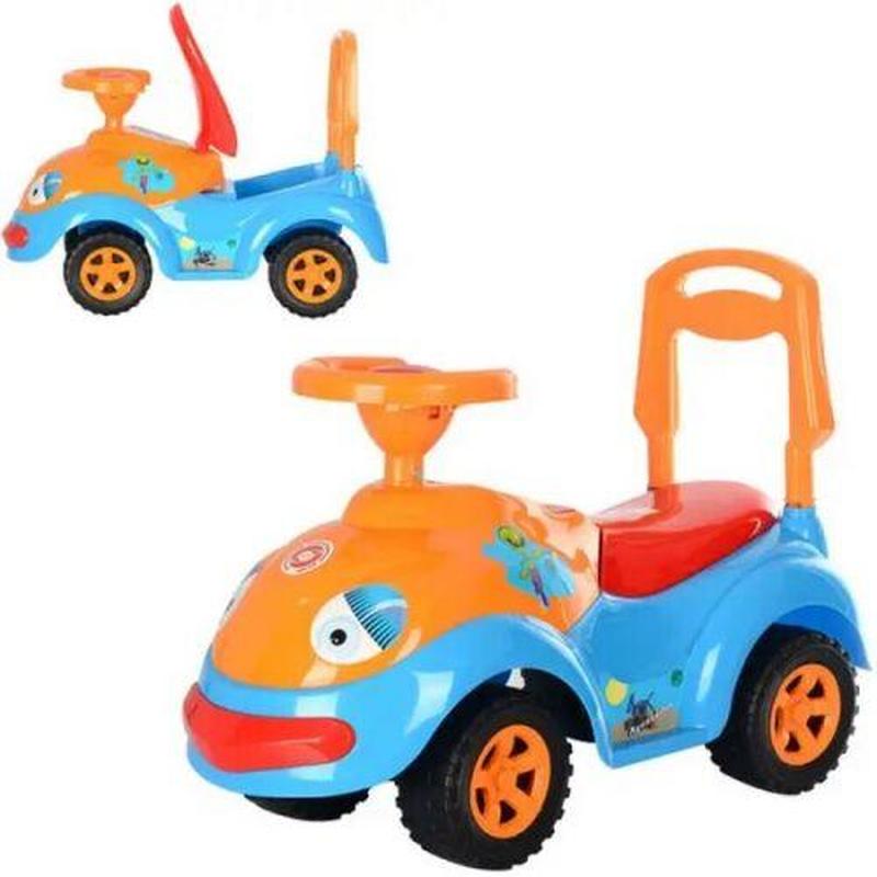 Каталка "Луноходик". Малыш отталкиваясь от пола ножками приводит игрушку в движение, чем развивает мышцы и моторику. Оборудована кнопкой включения и выключения световых и звуковых эффектов — 5 различных сигналов, звуки фанфар и мелодии, а также фразы. Максимальный вес ребенка: до 30 кг.