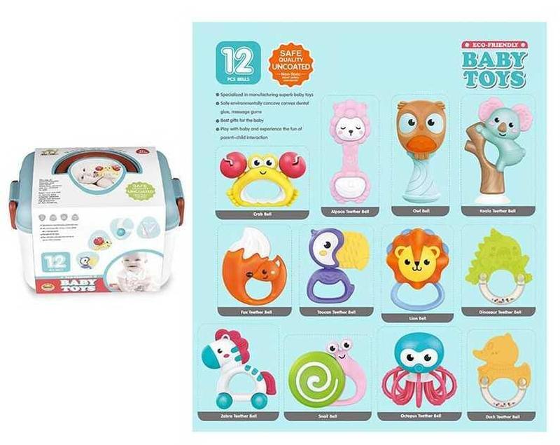 Отличный компактный набор из 12 погремушек с грызунками – лучший компаньон для малышей в возрасте от 3-х месяцев. Игрушки будут тренировать мелкую моторику малыша, фокусировать ее внимание на интересных элементах, издающих разнообразные звуки, способствовать развитию слухового, зрительного и сенсорного восприятия, что в результате скажется на развитии речи ребенка. А мягкие и эластичные текстурные элементы снизят неприятные ощущения при прорезывании зубчиков. Особенности: - в наборе представлены 12 погремушек; - погремушки выполнены из безопасного для здоровья пластика и резины; - игрушки можно стерилизовать; – имеют оригинальный дизайн в форме животных; - некоторые из игрушек имеют вращающиеся элементы; - погремушки имеют приятную цветовую гамму; - некоторые погремушки оснащены прорезывателями; - игрушки хранятся в удобном боксе с застежками и ручкой для переноски. * Характеристики и комплектация товара могут изменяться производителем без уведомления
