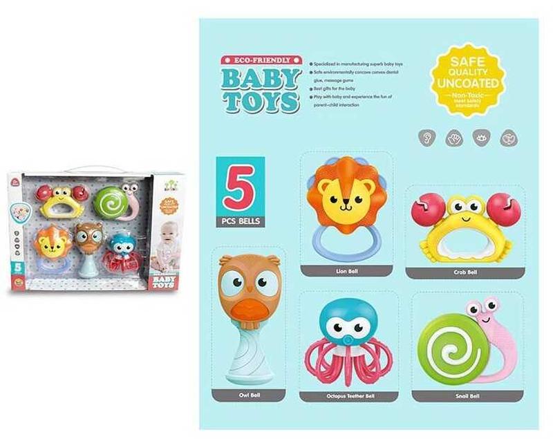 Отличный набор из 5-ти погремушек - лучший компаньон для малышей в возрасте от 3-х месяцев. Игрушки будут тренировать мелкую моторику крошки, фокусировать ее внимание на интересных элементах, издающих разнообразные звуки, способствовать развитию слухового, зрительного и сенсорного восприятия, что в итоге скажется на развитии речи ребенка. Особенности: - в наборе представлены 5 погремушек; - погремушки выполнены из безопасных для здоровья ребенка материалов; - игрушки можно стерилизовать; – имеют оригинальный дизайн в форме животных; - некоторые из игрушек имеют вращающиеся элементы; - погремушки имеют приятную цветовую гамму; - осьминог оборудован прорезывателем. * Характеристики и комплектация товара могут изменяться производителем без уведомления