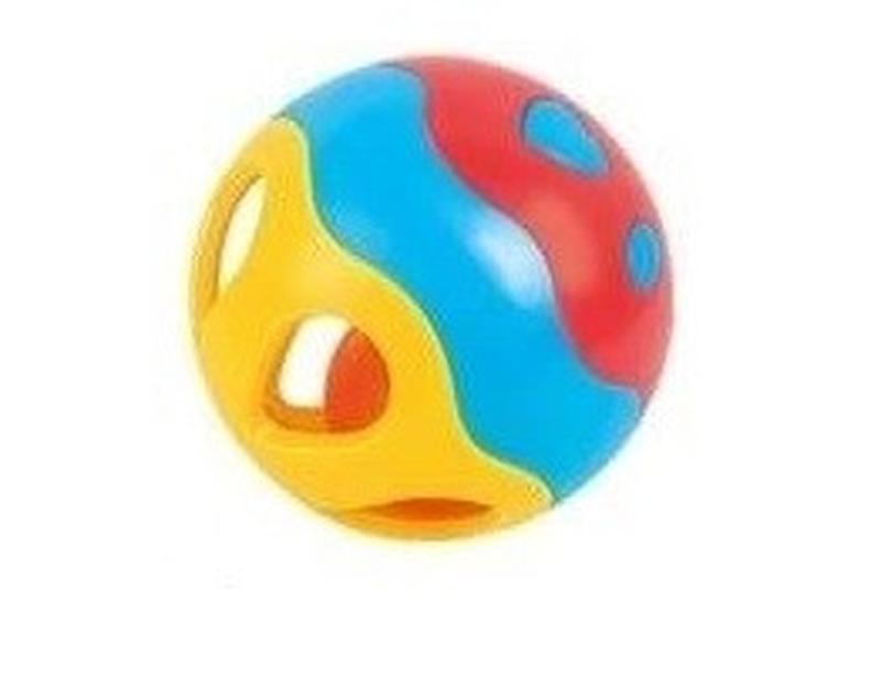 Погремушка "Шар" — яркая развивающая игрушка для малыша. Забавная игрушка развивает мелкую моторику, тактильные ощущения, цветовое и звуковое восприятие ребенка. Яркий разноцветный шар имеет несколько отверстий, за которые легко хвататься пальчиками. Внутри есть меньшие шарик с колокольчиком, которые приятно звенят. Диаметр игрушки - 10 см. Она произведена из прочного пластика - материал нетоксичен и абсолютно безопасен для ребенка. Рекомендуемый возраст: от 6 мес.