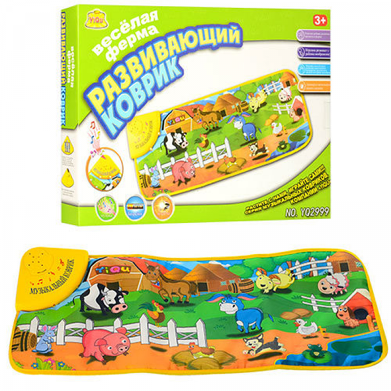 Дітки дуже швидко розвиваються і в цьому їм допомагають розвиваючі ігри. Музичний килимок "Весела ферма" на русском языке сподобається всім діткам. На килимку зображені різні тварини, при натисканні на яких видається звук. Килимок (70 * 28 * 2) працює на батарейках є світлові ефекти. Працює від 3-х батарейок АА (не входять в комплект). Габарити 38 * 26 * 4