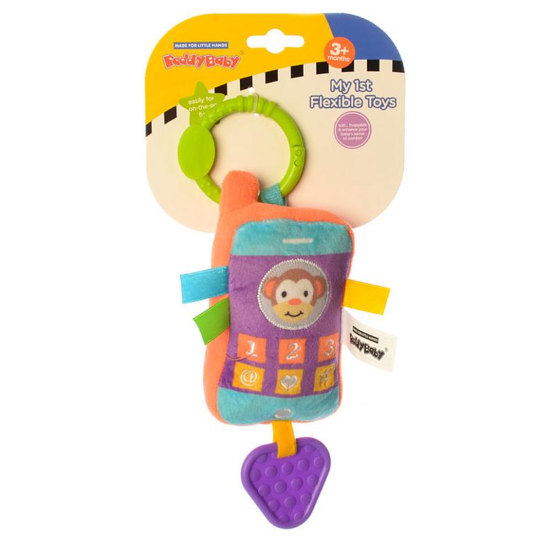 Підвіска на коляску Телефон- пищалка, з прорізувачем. Розмір іграшки 23см. Яскрава іграшка приверне увагу дитини, компактний розмір дозволяє зручно тримати брязкальце, розвиває тактильне сприйняття, зір і слух.