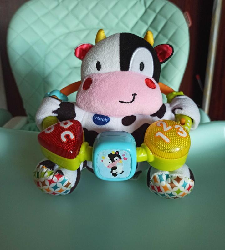 Музыкальная Коровка, в идеальном состоянии, имеет два уровня громкости, реагирует на все нажатия - переворачивание клавиш. Говорит и поет на английском языке. Гарна музика. Также воспевает алфавит и цифры. Освещение кнопок.