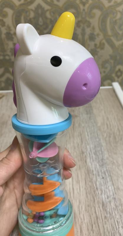 Брязкальце Музика дощу Единоріжка від Wilko. Завдяки іі формі дитині буде зручно тримати в руках. Різнокольорові кульки, які знаходяться всередині брязкальця, перекочуються, створюючи приємний звук. Виготовлено з міцного пластика. Сприяє розвитку дрібної моторики.
