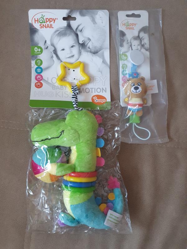 Предлагаю подвесную мягкую развивающую игрушку на коляску, кроветочку, автокресло или развивающий коврик торговой марки Happy Snail от 0 месяцев. !!! До покупки у ПОДАРУНОК - тримач для соски "Ведмедик" (на фото). Игрушка яркая, выполнена из высококачественных, безопасных и разнофактурных материалов, что стимулирует развитие пяти органов чувств ребенка такими как: обоняние, прикосновение, слух, зрение и вкус, и активно развивает соответствующие навыки. Можна прати при 30* Подвеска-бряскальце "Крокодил Кроко" - 330 грн Погремушка помещена в мячик, пустышка в носу, 4 разноцветных кольца - снимаются. Размер: 34*15*7 см. Безпечна оплата. Доставка по Новой почте, Укр-быту.