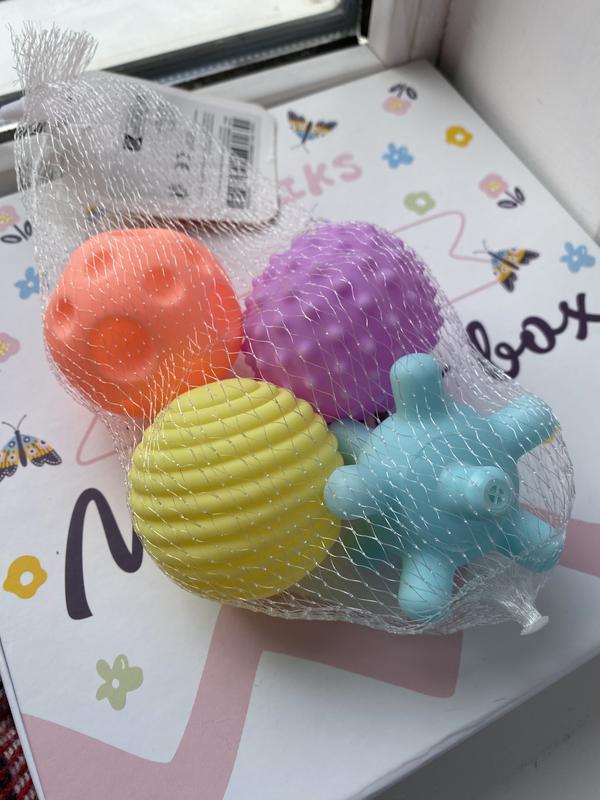 Унікальні м'ячики - сенсорики з безпечного і тактично приємного матеріалу приваблюють малюків цікавими текстурами і розмаїттям кольорів! Завдяки різним текстурам іграшка сприяє: -Розвитку мислення, -координації рухів, -Удосконаленню моторики ручок і органів чуттів. -Підходять як іграшки для купання. -Підходить для масажу стоп У наборі 4 Шт, розмір - від 6 см