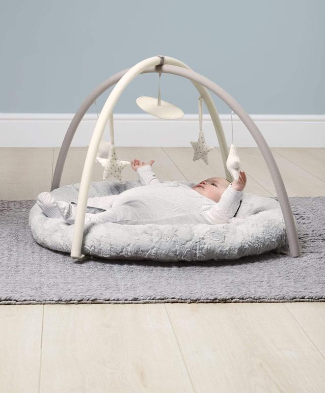 Развивающий одеял для младенцев Mamas & Papas. На дугах размещены 4 игрушки в виде звездочек, три из которых звенят и одна пищит. Посередине расположено безопасное зеркало, имеет мелкие царапинки, на игру не влияет. У коврика мягкие бортики. В хорошем состоянии. Пересилаю.