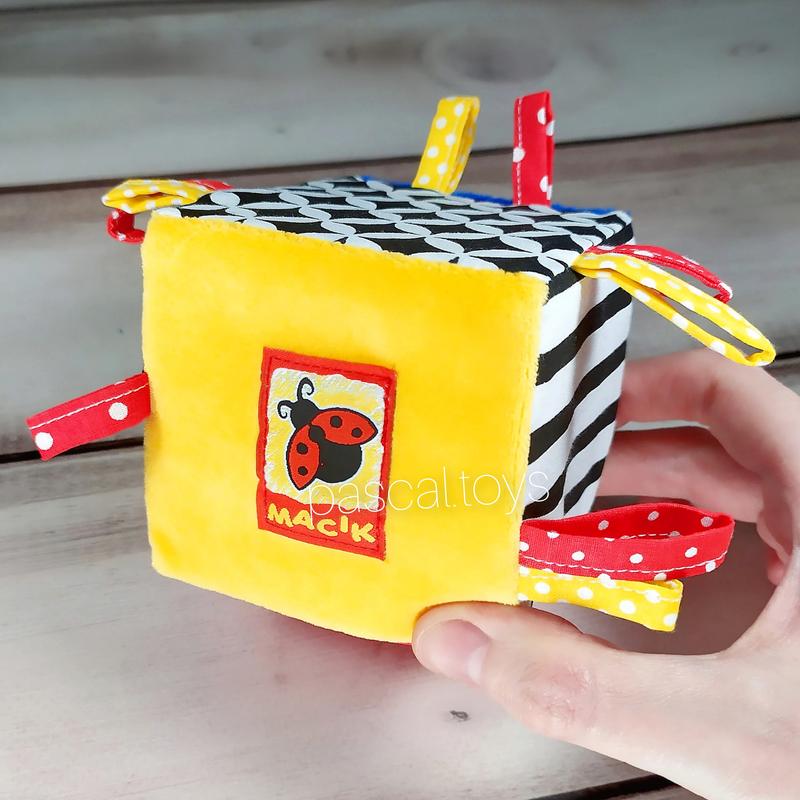 🕯 Возраст: 3 мес.+ 📏 Размеры: - кубика: 8*8*8 см; - в упаковці: 23*10*8 см. 🧰 Материал: 100% хлопок, швицкая фурнитура, поролон, звуковые элементы. 🛠️ Производитель: Масик. Этот кубик подходит для 👶🏻 деток уже с рождения: он пошит из 🍃 натуральных тканей и не содержит острых углов или мелких деталей ✅. Игрушку можно давать ребенку в ручку 👋🏻 или подвешивать в коляске, играть в кроватке или по дороге в машине. На кубике изображены 🖼️ контрастные узоры, фигуры и линии, которые непременно заинтересуют малышку. Мягкий и приятный на ощупь 👐, он развивает моторику рук и сенсорное восприятие ребеночка. В качестве книжки-шарудка 📖куб выдает приятные шелестючи 🎶 звуки.