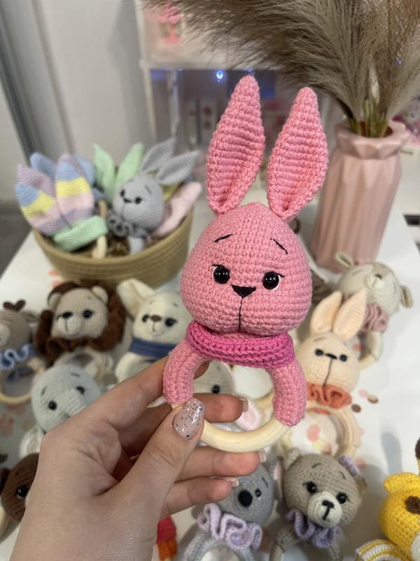 Іграшка ручної роботи , брязкальце вʼязане гачком «зайчик» , подарунок на виписку, під зам...
