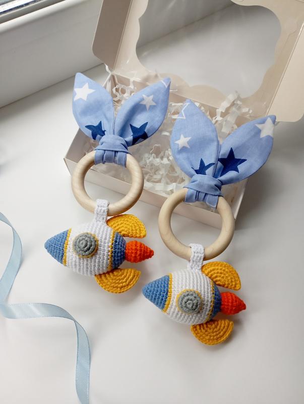 Вязаная игрушка ракета, грызунок прорезыватель, шуршащие ушки