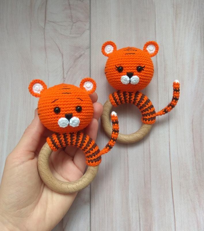 Вязаная погремушка тигр, грызунок прорезыватель