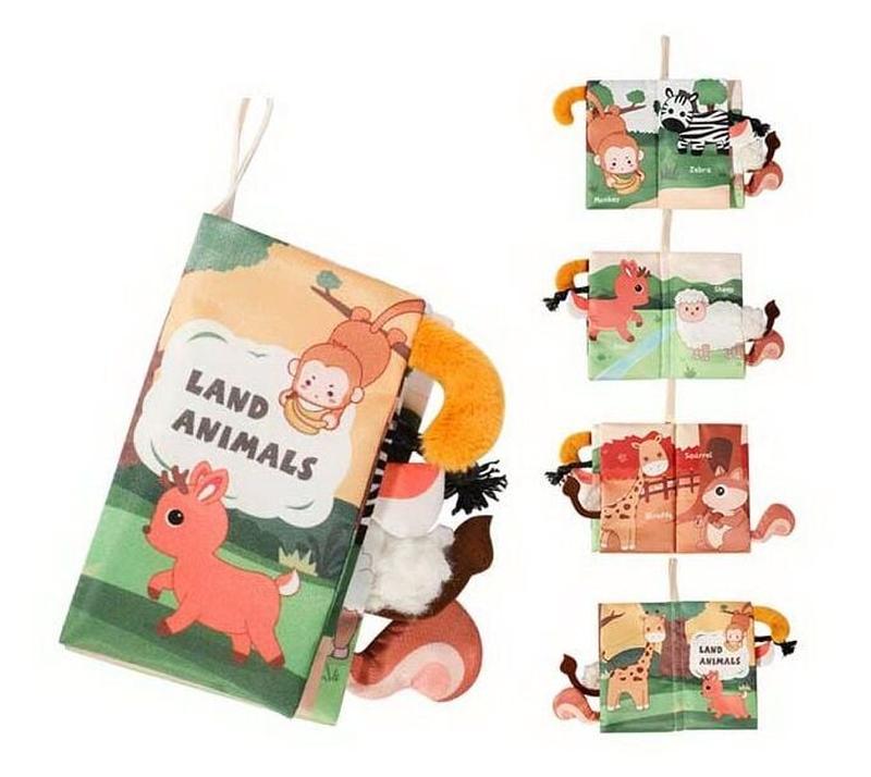 Ця м’якесенька книжка стане помічником на шляху розвитку та процесу пізнання світу малюком. Адже іграшка має тканинні сторінки, що приємно шелестять та прикрашені яскравими зображеннями тваринок. Але це ще не все, адже на кожній сторінці є об’ємний плюшевий хвостик, що підходить до кожної з тваринок. Така книжечка сприятиме розвитку моторики рук, координації рухів, слуху, зору та відчуття дотику, адже так цікаво вивчати тваринок та мати змогу доторкнутися до них. Розмір 22 на 11 см Особливості: - книжечка виготовлена з м’якого текстилю; - сторінки мають шелестючі елементи та пискавку; - іграшка виконана у тематиці зоопарку; - на кожній зі сторінок можна побачити яскраві зображення тваринок, що мають об’ємні плюшеві хвостики; - книжку можна підвісити до ліжечка чи візочка.