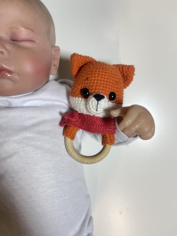 Іграшка ручної роботи «лисеня» , брязкальце « лисичка» вʼязане гачком, подарунок на виписк...