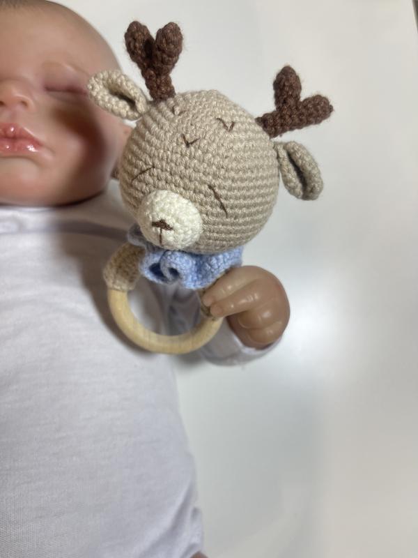 Іграшка ручної роботи «олень», брязкальце вʼязане гачком, подарунок на виписку, під замовл...