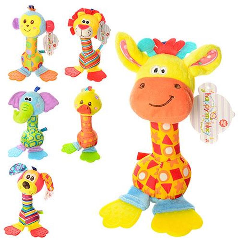 Брязкальце X11832 Тварина 6 видів Шарудить, прорізувач, пищить Розмір іграшки: 20 см Матеріал: тканина Упаковка у пакеті: 8×20×5 см Китай