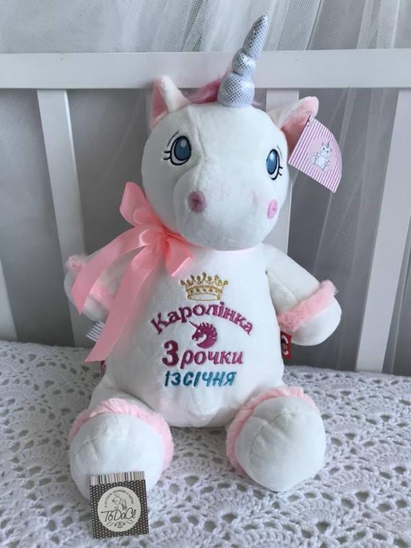 Іграшки європейського виробництва з іменною вишивкою (або метрикою) стануть прекрасним подарунком на будь-яке свято! Вишивку та іграшку Ви вибираєте самі! Асортимент регулярно оновлюється! 100% гіпоалергенний матеріал. Висота іграшки — 40 см. Терміни виконання обговорюються індивідуально. Вирушаємо в будь-яке місто світу.