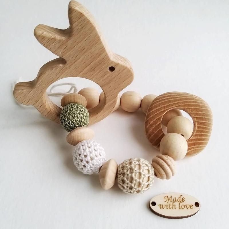 Гризунок прорізувач браслет з букових намистин зайка, пташка, їжачок, тедді, бегемот, ведм...
