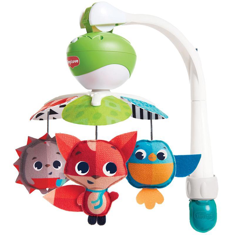 Тип іграшки: Мобілі На допомогу армії Мультифункциональный мобиль 3 в 1 Tiny Love Веселая лужайка – чтобы успокоить плачущего малыша, достаточно лишь включить приятные мелодии на этом мобиле и обратить внимание ребенка на подвешенные забавные игрушки. Кроха с интересом будет их рассматривать, а потом непременно захочет дотянуться и дотронуться до ярких зверушек. Характеристики: яркий мобиль привлечет внимание малышей красочными игрушками, которые забавно вращаются на карусели; маліши с интересом будут наблюдать за движениями игрушек и тянуться ручками к ним, развивая хватательный рефлекс; крепится не только к кроватке, но и к коляске или переноске специальным универсальным фиксатором; звуковой модуль с регулируемой громкостью может воспроизводить 5 приятных мелодий в течение 30 минут; при желании можно настроить один из 2 возможных режимов работы мобиля: просто вращение или движение игрушек под музыку; игрушка поможет развить визуальное, слуховое и тактильное восприятия детей, а также разнообразит их досуг; мобиль выполнен из нетоксичного пластика высокого качества, который окрашен насыщенными, стойкими красителями; підвішені іграшки виготовлені з гіпоалергенного текстильного матеріалу, який має приємну на дотик поверхню.