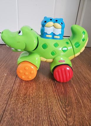 Очень хорошее состояние. Крокодил – это инерционная игрушка, предназначенная для веселого времяпровождения малыша. Если нажать на двух гнездящихся на спинке крокодильчика, то он быстро помчится вперед. При этом он будет щелкать челюстями, поднимать и опускать ее. У крокодильчика подвижный хвост. Ребенок может пошевелить его в одну и другую сторону. При этом раздается характерный щелчок. За такой игрушкой малышу будет интересно следить и запускать. После нажатия на плотницу игрушка быстро едет на достаточно далекое расстояние. Поэтому ею можно играть и на улице, не ограничивая себя пространством внутри дома.