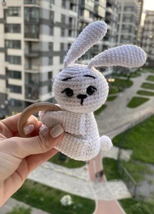 Кольцо-грызунок из натурального бука Гипоаллергенная нить Ручная работа Внутри погремушка