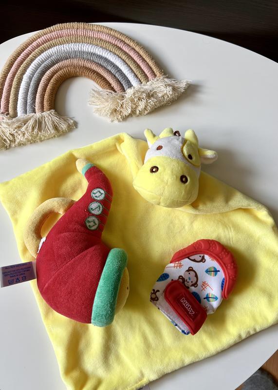 Набір іграшок для малюка: дудка пищить від chicco, рукавичка гризунець від nûby, комфортер корівка. Стан всього ідеальний. Ціна набору 114 грн.🏷️