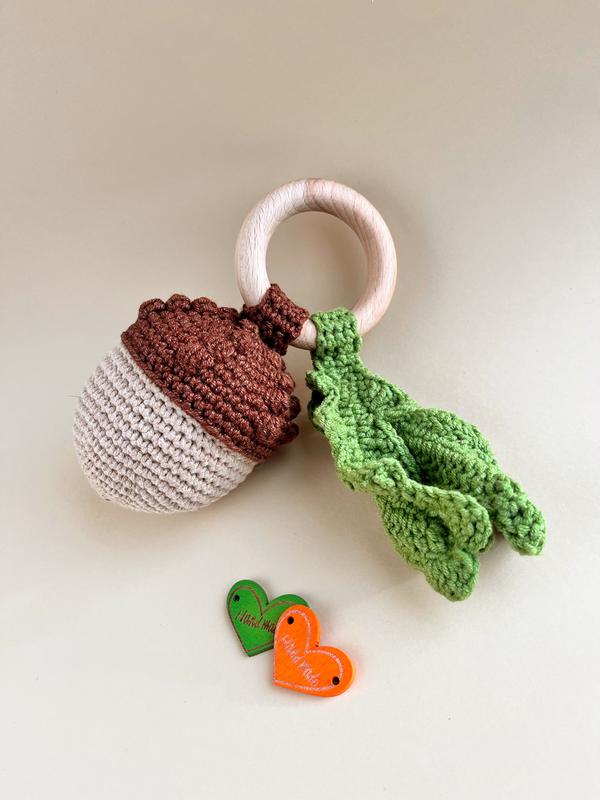 Брязкальце жолудь-перша іграшка дитини. Легка,бавовняні нитки,приємний звук,гладке букове кільце.