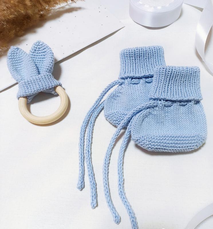 Комплект для новорожденных. Грызунок и пинетки (размер 0-3мес). Можно кусать,грызть, сосать, шуршать. Удобно держать в ручке. Все изготовлено из безопасных, гипоаллергенных материалов (хлопок). Для вечерних летних прогулок. Мягкое и нежное☁️ Можно выполнить с шуршиванием или без. В любом цвете🌈 Идеально на подарок 🎁 Можно отдельно грызунок и пинетки. Цена набора 450 грн. Пинетки отдельно 250 грн, грызунок 200 грн.
