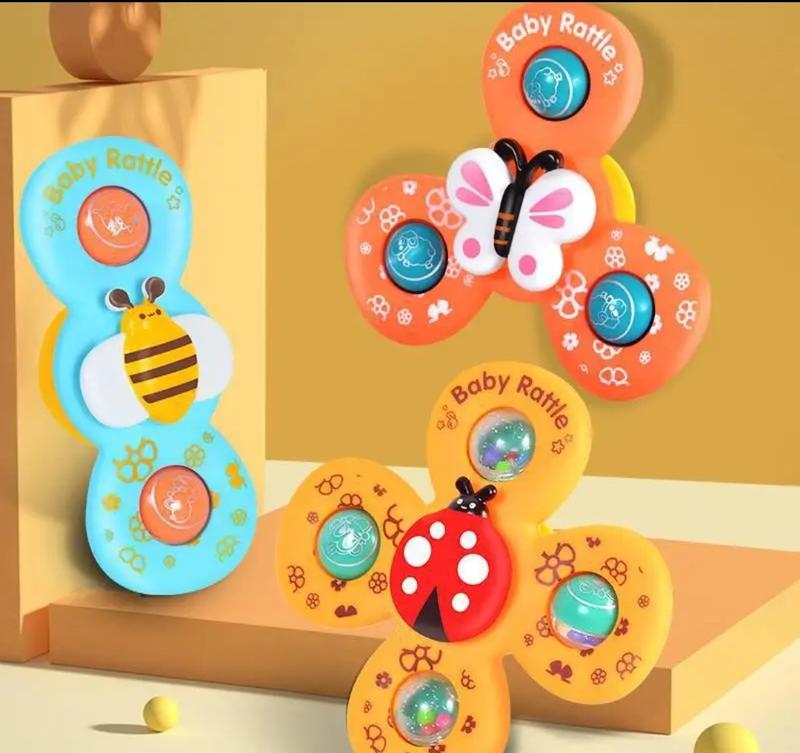 Игривые и яркие погремушки-спиннеры придутся по душе самому взыскательному малышу.Брымушки на присоске, можно прикрепить в ванной,до стены,стильчика для кормления, на столе. Погремушки яркие и звенят,крутятся.В погремушки прочная присоска.