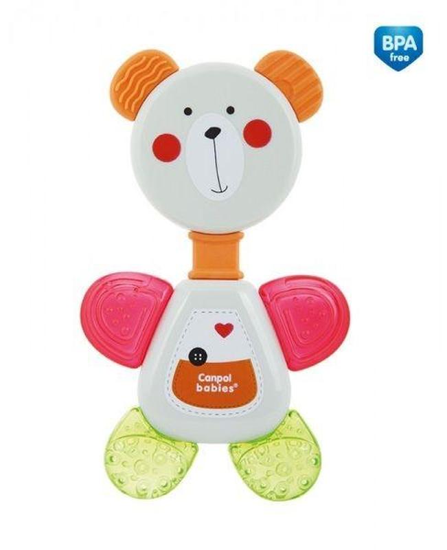 Погремушка-зубогрызка Мишка прекрасно сочетает преимущества прорезывателя и погремушки. Мягкая сторона облегчит боль при прорезывании зубчиков, а погремушка в виде симпатичного мишки способствует правильному развитию зрительно-двигательной координации малыша.